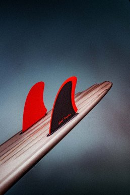 These fit in the hole between an upright twin and a keel, without being too ‘blobby’ or bulky. The swept back leading edge reminiscent of a more keel styled approach minimises turbulence for speed and drive when flying down the line, with a more pulled in trailing edge to allow for tighter bottom turns and to give plenty of spring when projecting more vertically. Equally well placed in your high-performance twin or more traditional fish.